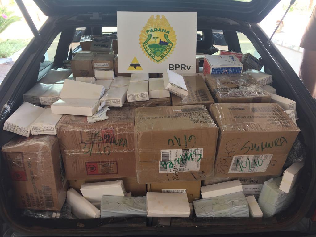 Na tarde de hoje (27), durante Operação de Fiscalização na PR-323, a equipe de serviço abordou o veículo GM/Kadett de cor cinza com placas de Paiçandu, ao realizar abordagem ao veículo foram localizados no seu interior e no porta malas uma grande quantidade de peças variadas de automóveis, peças de motocicleta, peças de aparelhos ortodônticos, peças de produtos eletrônicos, brinquedos e vitaminas (suplementos). Após conferência da mercadoria o condutor de 33 anos, foi qualificado. O veículo juntamente com as mercadorias foram entregues na Delegacia da Receita Federal em Guaíra/PR., para providências cabíveis