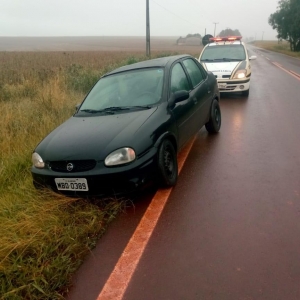 Hoje, terça-feira (26), policiais rodoviários em operação de fiscalização desenvolvida na PR-180, deram a ordem de parada para o condutor do veículo GM/Corsa de placas MBD-089 de Blumenau-SC, ordem essa desobedecida pelo condutor que arremessou o veículo contra a equipe de serviço e empreendeu fuga.