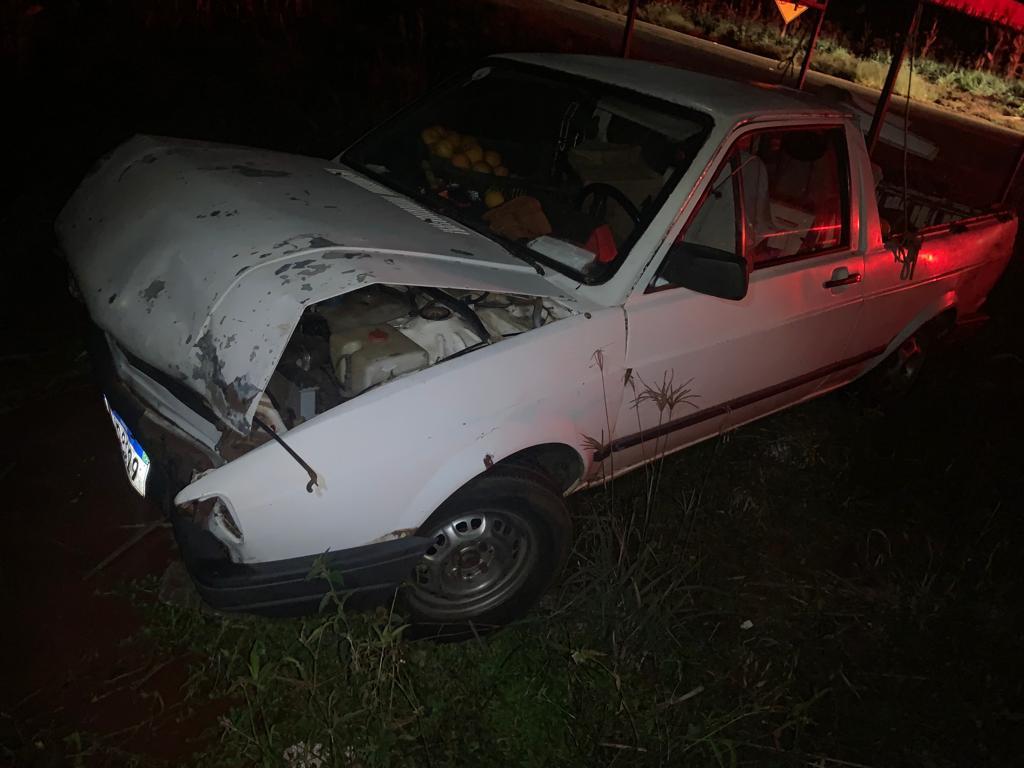 O veículo Saveiro de Toledo carregado de frutas e conduzido por um homem de 64 anos se envolveu em um acidente na rodovia PR-317 na noite deste domingo.