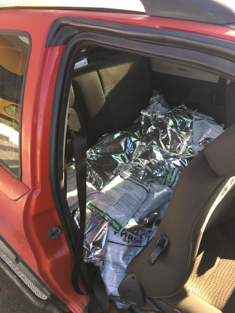 Na caçamba do veículo, estavam os agrotóxicos contrabandeados do Paraguai.