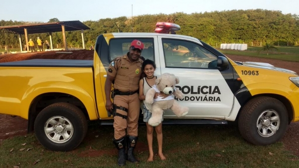 Na tarde desta sexta-feira (21), o Posto Rodoviário de Marechal Cândido Rondon, representado pelo Soldado Domingos, fez uma visita muito especial à menina Hemilly, pois está completando 10 anos de vida.