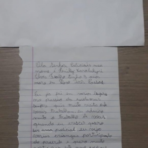 Na oportunidade foi entregue um singelo presente em comemoração à data especial. Hemilly há alguns meses enviou uma cartinha para a PRE de Marechal, na qual dizia que gostaria de conhecer o posto e o trabalho da Policia Rodoviária. Na época, ela residia em Novo Três Passos, assim, ela e os pais estiveram no posto conhecendo tudo.