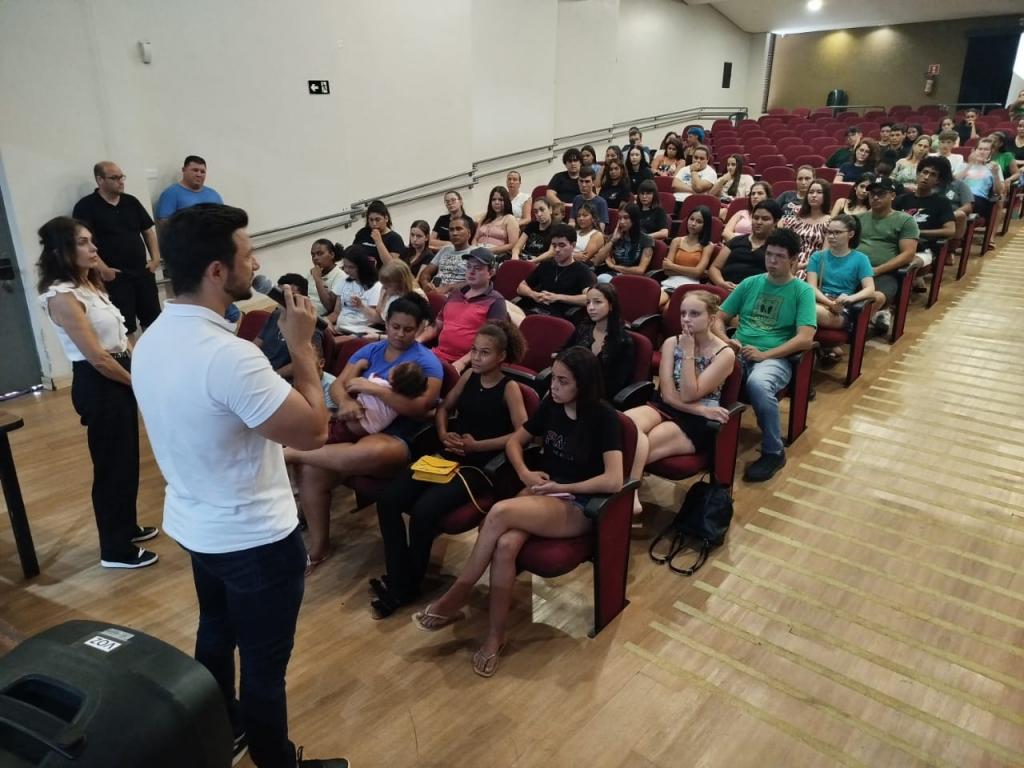 O prefeito Rodrigo Ribeiro e a vice-prefeita Judith Sendtko, juntamente com secretários municipais, se reuniram na tarde desta terça-feira (21), no Teatro Municipal Ludovico Riedi, com estagiários que atuam em setores da administração municipal.