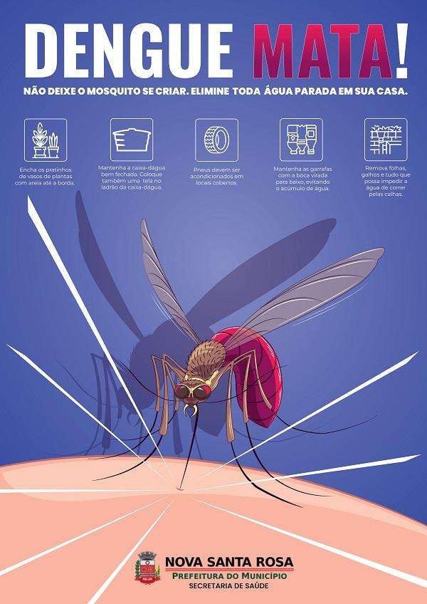 Assim, SOLICITAMOS que a população de Nova Santa Rosa (sede e distritos) colabore com o controle e prevenção. O LIRAa já aponta para uma possível infestação do mosquito, por isso é IMPORTANTE que as pessoas tomem o cuidado e vedem adequadamente os locais de coleta da água da chuva, que limpem no mínimo duas vezes por semana os bebedouros dos animais, que guardem pneus em áreas cobertas e que descartem o lixo na lixeira. Todos os cuidados visam evitar o acúmulo de água, por menor que seja.