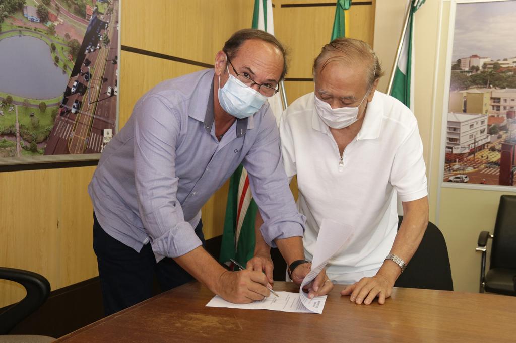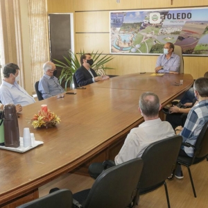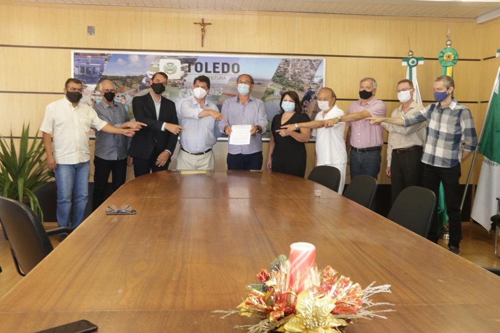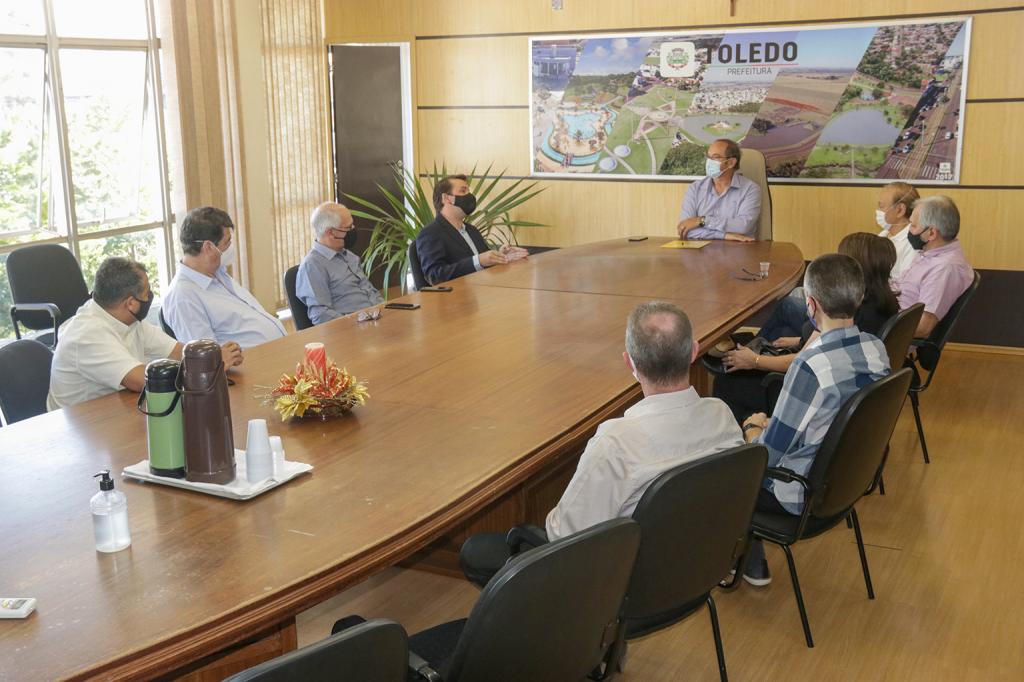 Um passo importante para a melhoria dos serviços de saúde para a população de Toledo e região foi dado na manhã desta terça-feira (22). Representantes da Prefeitura de Toledo; da Associação Paranaense de Cultura (APC), mantenedora do câmpus Toledo da Pontifícia Universidade Católica do Paraná (PUCPR); e da Associação Beneficente de Saúde do Oeste do Paraná (Hoesp), entidade que administra o Hospital Bom Jesus estiveram reunidos na Sala de Reuniões do gabinete do prefeito Lucio de Marchi para a sanção à Lei Ordinária “R” nº 91/2020, publicada no Órgão Oficial.