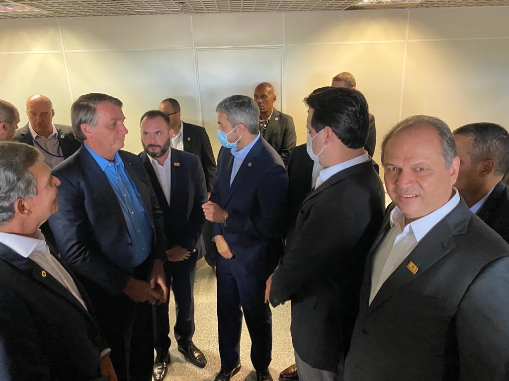 Ainda no aeroporto, Bolsonaro se encontrou com o presidente Mário Abdo Benitez, do Paraguai. Os dois chefes de estado visitarão a obra de construção da segunda ponte entre os dois países.