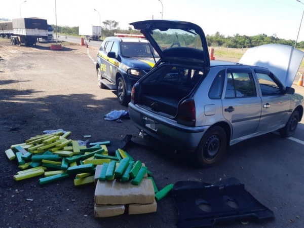 Por volta das 9h40, uma equipe da PRF abordou o automóvel na BR-487. Durante a fiscalização os policiais rodoviários federais verificaram um volume oculto sob uma coberta atrás dos bancos dianteiros onde encontraram quatro fardos de maconha.