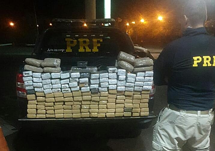 A Polícia Rodoviária Federal (PRF) em duas ocorrências registradas durante o final de semana, em Guaíra (PR), apreendeu um carro carregado com 128 Kg de maconha e recuperou um veículo roubado em Umuarama (PR).