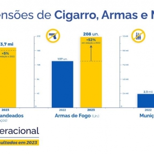 Outro crime que traz danos diversos à sociedade brasileira, o contrabando de cigarros registrou uma alta de 5%, com mais de 33,5 milhões de carteiras apreendidas no estado. Em 2023, quase mil pessoas foram detidas pelo crime de contrabando.