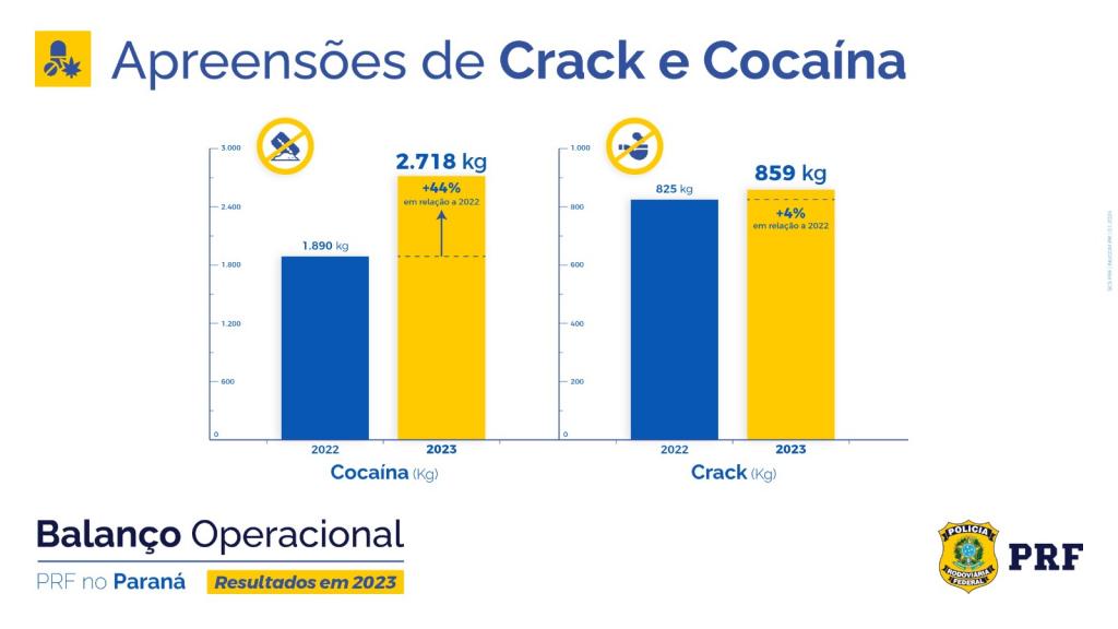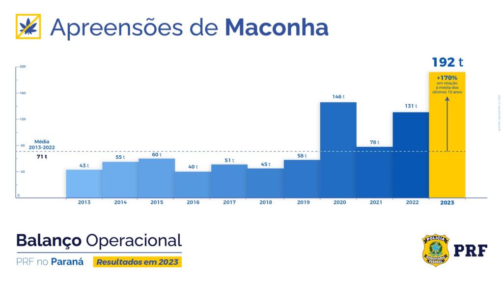 “Todo esse aumento significativo do volume de apreensões é reflexo, entre outros fatores, do trabalho diário e do empenho das nossas equipes de policiais rodoviários federais, não apenas nos trechos próximos à fronteira, mas em todas as regiões do Paraná”, avalia o superintendente da PRF, Fernando César Oliveira. “Ao longo das últimas décadas, a Polícia Rodoviária Federal vem aprimorando o uso de ferramentas de tecnologia e priorizando seu setor de inteligência, como forma de otimizar as abordagens, o que também se reflete nos excelentes números deste balanço de 2023.”