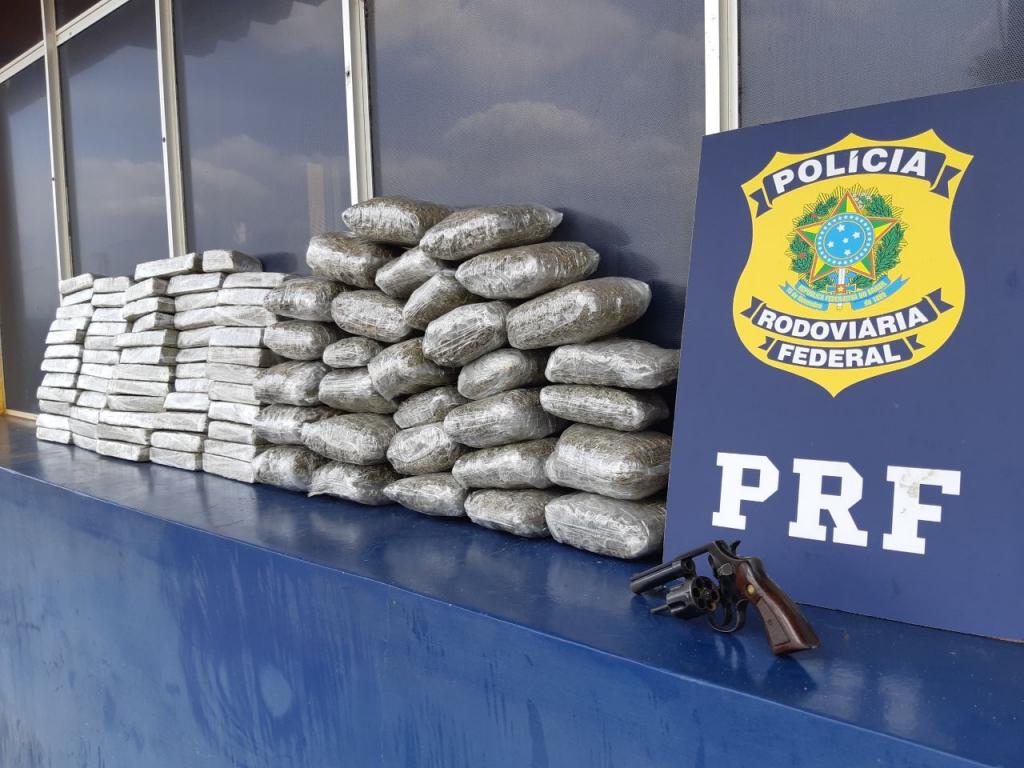 No porta-malas do veículo os policiais encontraram diversos tabletes de maconha, totalizando 59 tabletes de maconha prensada que pesaram 39 quilos da droga e mais 30 pacotes de maconha tipo capulho que pesaram 18,7 quilogramas da droga, totalizando 57,7 quilogramas.
