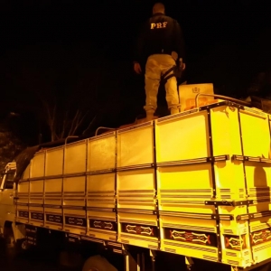 Os policiais rodoviários federais em fiscalização pela BR 163, suspeitaram de um caminhão VW Deliver que transitavam pela estrada rural nas proximidades.