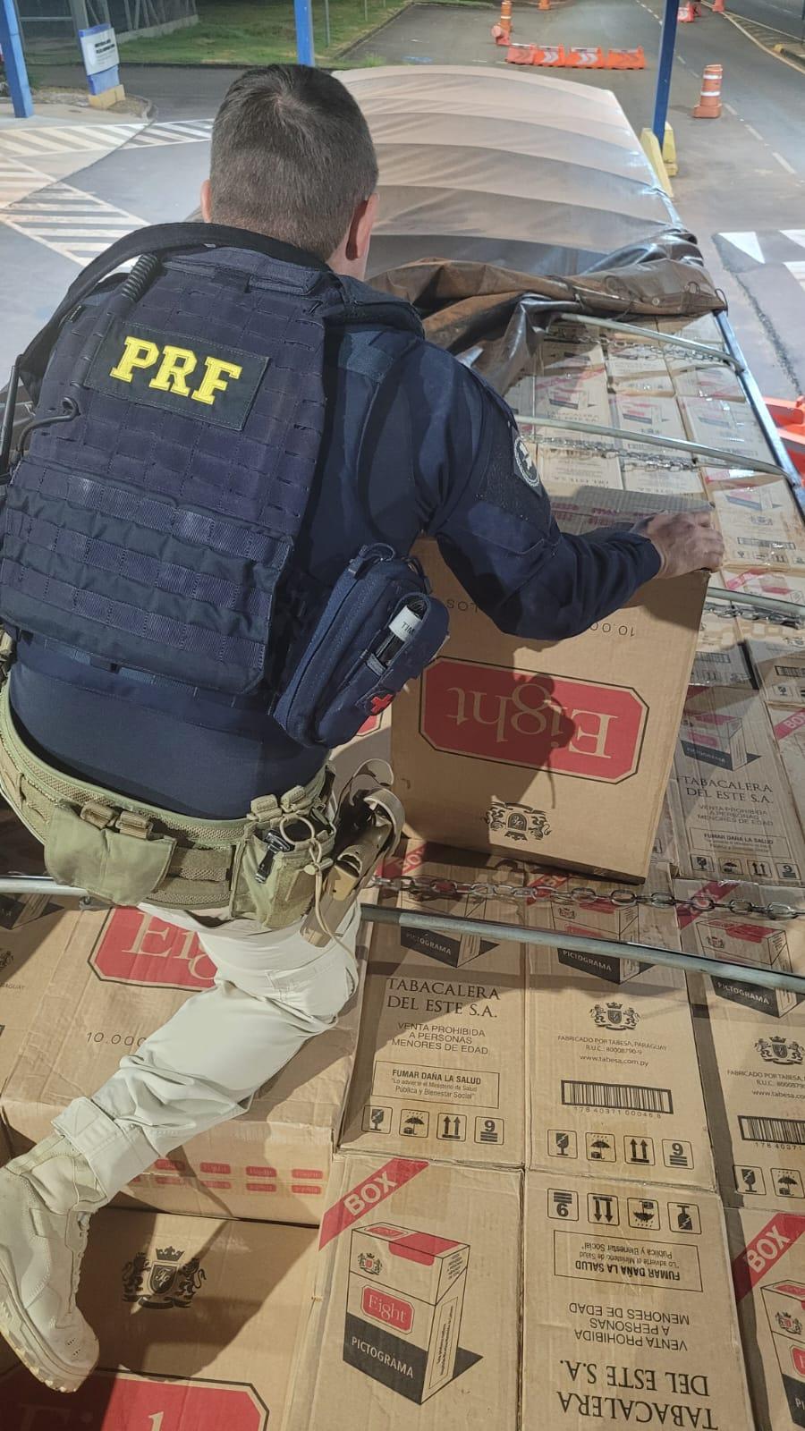 A Polícia Rodoviária Federal (PRF) apreendeu na madrugada dessa quinta-feira (25), uma carreta carregada de cigarros contrabandeados do Paraguai.