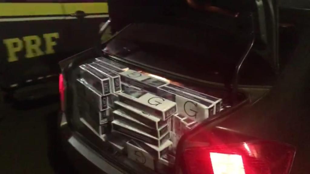 Por volta das 18h30 em ronda pela BR-163, os agentes da PRF abordaram o veículo com placas de Curitibanos, SC, e constataram que seu porta malas e banco traseiro transportavam aproximadamente 1.050 pacotes de cigarros contrabandeados do Paraguai.