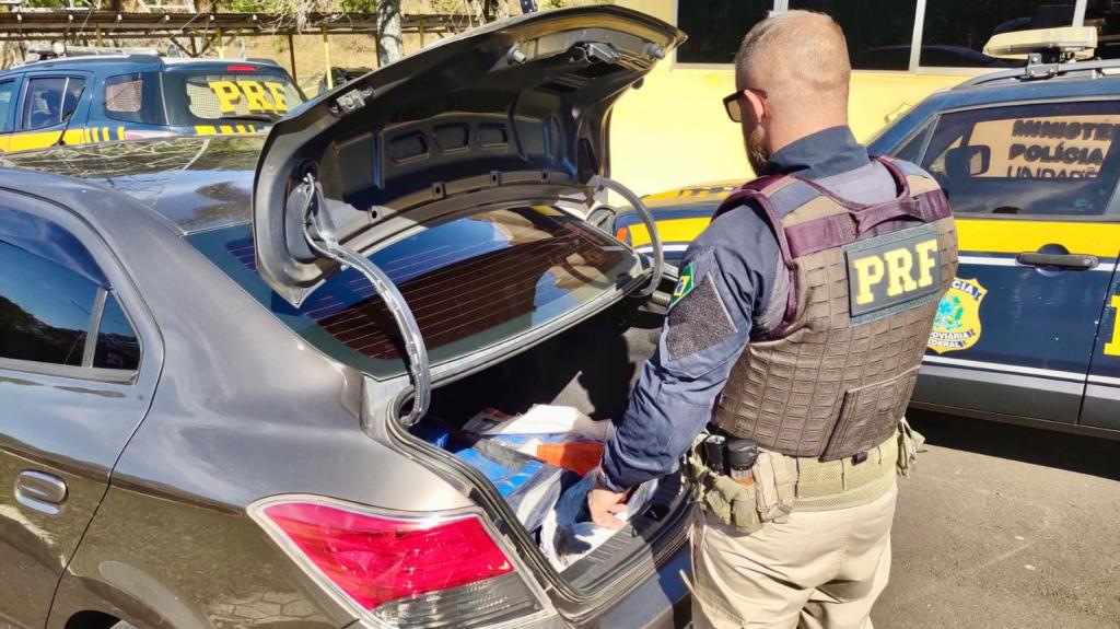 Na tarde desta Terça-feira (23), por volta de 13 hora, policiais rodoviários federais realizavam ronda na BR 277, município de Guarapuava-PR, quando deram ordem de parada ao condutor de um veículo Prisma de cor cinza e emplacamento do município de Jaguariaiva-PR.