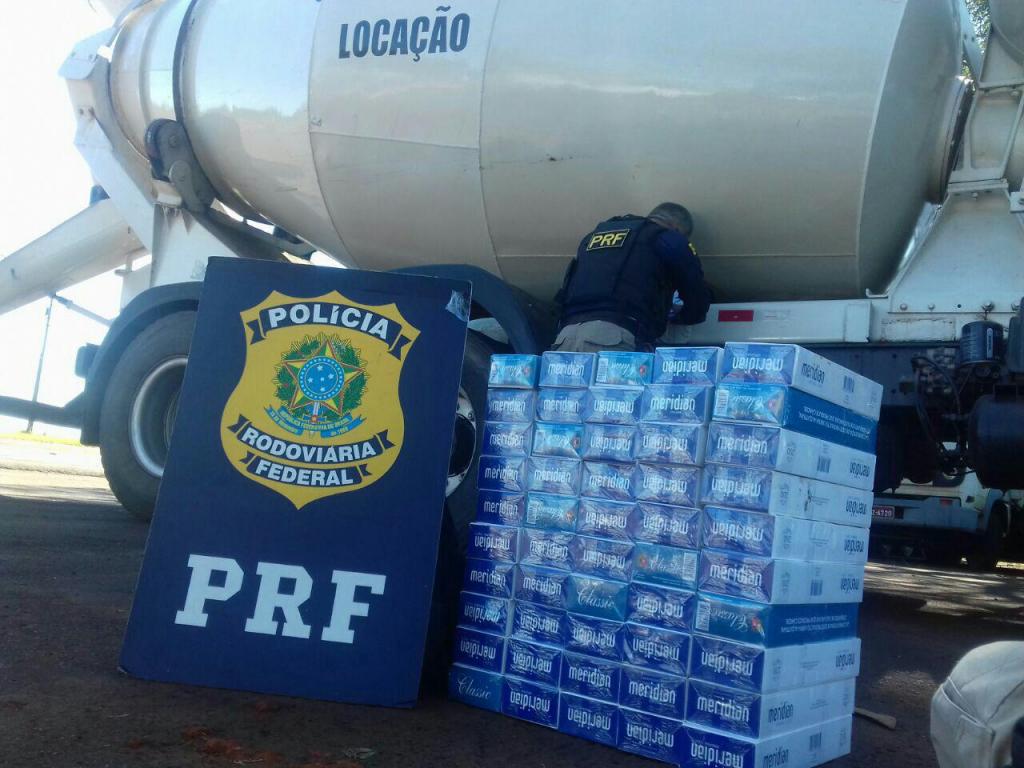 A Polícia Rodoviária Federal (PRF) apreendeu na manhã de quarta (04), por volta das 09h00, uma grande quantidade de cigarros contrabandeados do Paraguai dentro de um caminhão betoneira em São Miguel do Iguaçu, os agentes da PRF abordaram o veículo, conduzido por um homem que disse que estaria indo para Cascavel realizar manutenção do caminhão, desconfiados os policias realizaram uma vistoria e constataram que o interior do balão da betoneira estava recheado de cigarros contrabandeados do Paraguai.
