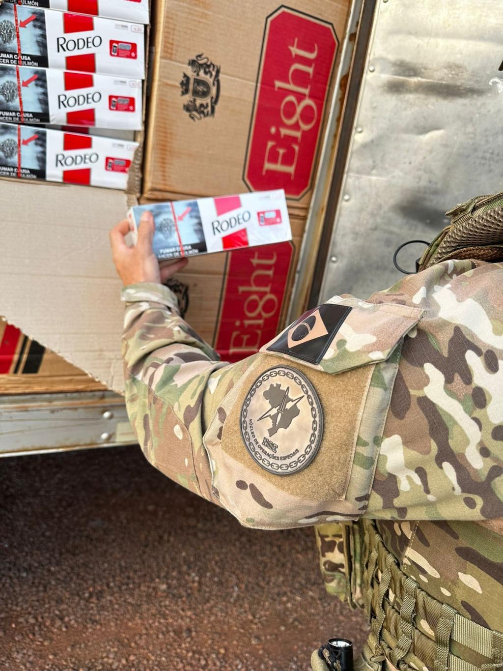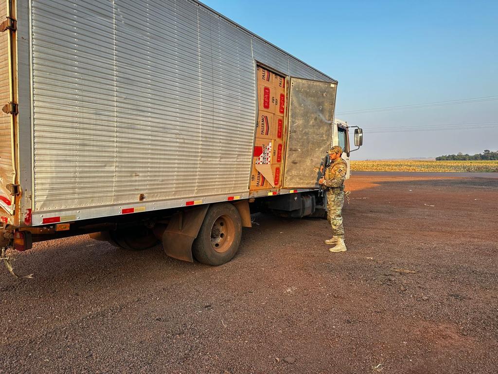 Dentro do caminhão haviam 175 mil caixas de cigarros. O veículo também estava com os sinais identificadores adulterados e placas clonadas.