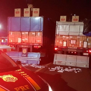 A Polícia Rodoviária Federal (PRF) prendeu um homem e apreendeu dois conjuntos, Cavalo Trator e Semirreboque, carregados com cigarros. Sendo ambas as apreensões realizadas pela equipe de PRFs em serviço na UOP (Unidade Operacional) de Santa Terezinha de Itaipu, no início da madrugada desta quinta-feira (19)