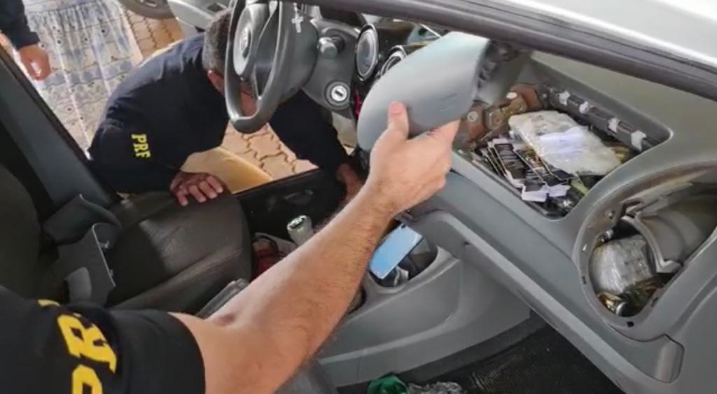 Os PRFs acabaram percebendo que havia algo anormal no painel e decidiram fazer uma fiscalização mais minuciosa. Eles então descobriram que o compartimento estava preparado para transporte de ilícitos e que tinha um sistema oculto para liberar o acesso.