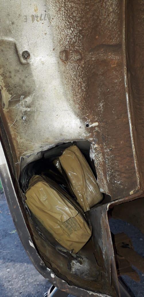 Por volta das 8h desta sexta-feira (1), agentes da PRF abordaram um Citroën C3 em Alto Paraíso, na BR-487. Durante a vistoria, os policiais notaram que o motorista demonstrava muito nervosismo, momento em que intensificaram as buscas, sendo que encontraram, dentro do painel e da lataria do carro, 46 tabletes de maconha, que após pesados, totalizaram 28,25 quilos da droga.
