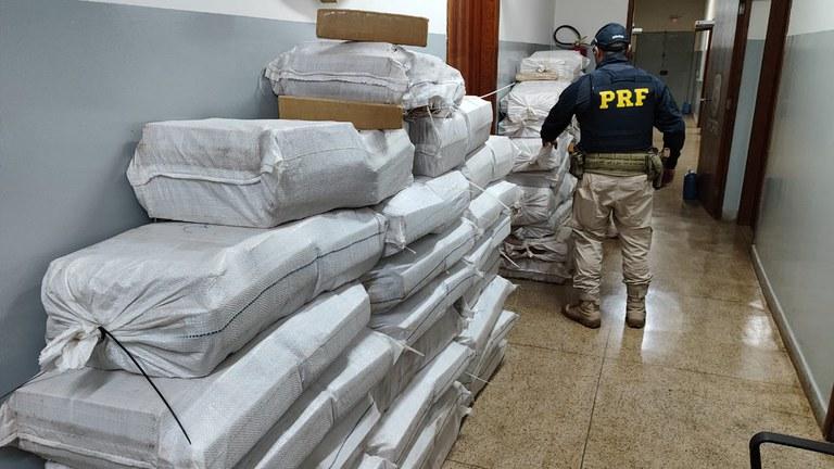Ao se aproximar do veículo, a equipe policial percebeu forte odor de maconha proveniente da carroceria. Em meio à carga de paletes, os policiais encontraram diversos fardos contendo maconha, totalizando 1.570 quilos.