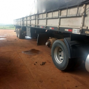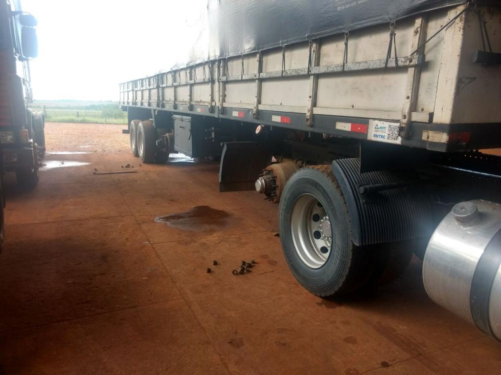 Os policiais iniciaram uma fiscalização mais aprofundada onde foi possível averiguar alguns indícios que voltaram a atenção para os pneus, tanto do C. Trator quanto do semirreboque, sendo necessário deslocar com o veículo até uma borracharia para a desmontagem dos pneus.