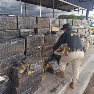 A Polícia Rodoviária Federal (PRF) apreendeu, na manhã desta sexta (18), mais de uma tonelada de maconha em Lindoeste (PR). A droga estava em um fundo falso de um caminhão que tinha como destino Santa Catarina. O motorista, que sabia da droga, foi detido.