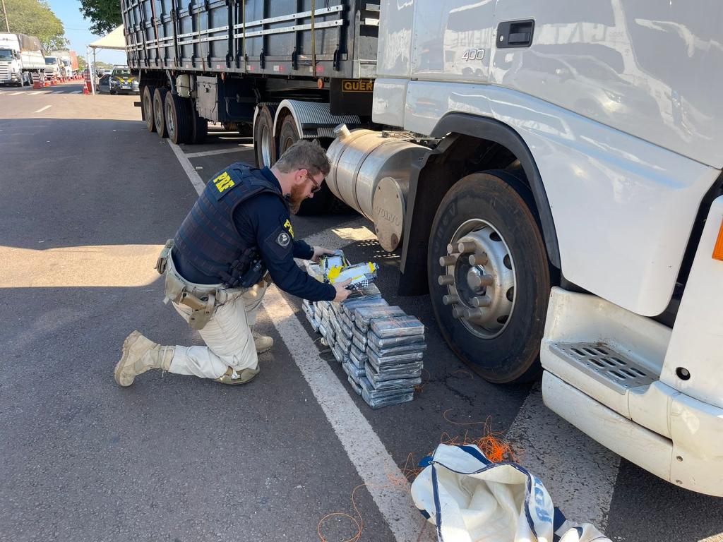 A droga estava escondida dentro do painel de um caminhão, que estava estacionado no acostamento da rodovia.