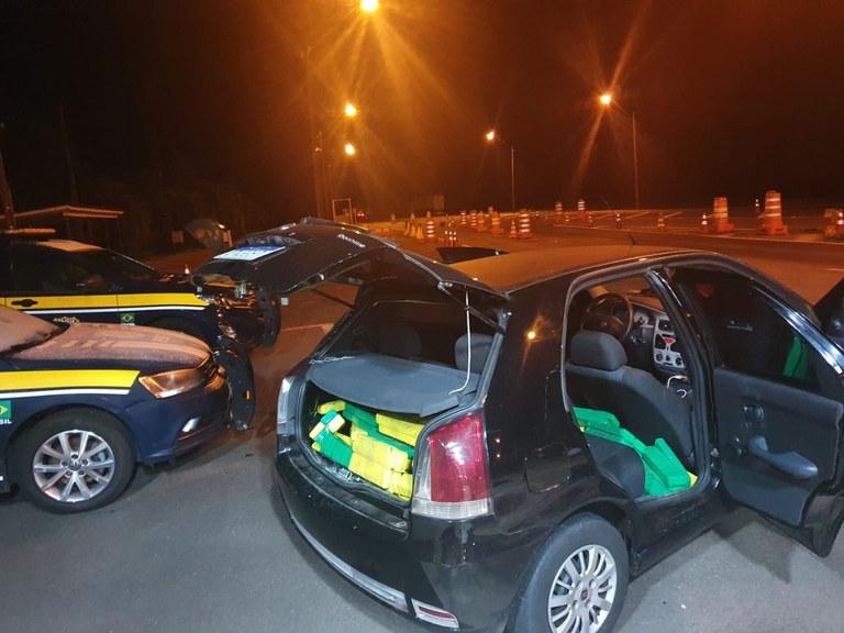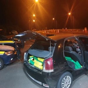 Em Irati, na madrugada desta segunda-feira (1), ao abordar um veículo suspeito a equipe da PRF encontrou 181 quilos de maconha, acomodados sobre o banco traseiro do carro, sem nenhum tipo de ocultação.