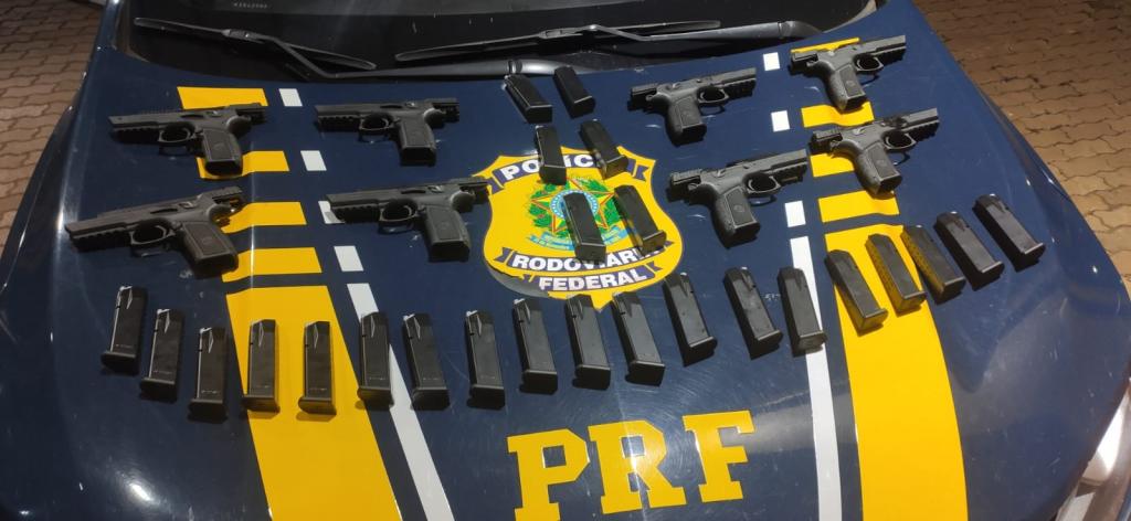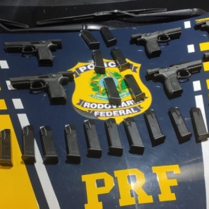 A Polícia Rodoviária Federal (PRF) apreendeu na noite de ontem (16), em Santa Tereza do Oeste/PR, oito pistolas de calibre 9 milímetros, 25 carregadores e 1.867 quilos de maconha.