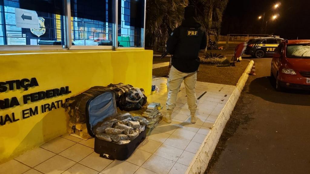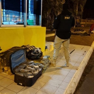 Na sexta (9), por volta das 16h40, em Guarapuava, na BR-272, policiais rodoviários federais apreenderam, em um ônibus, 25 quilos de maconha com um passageiro, que foi preso.
