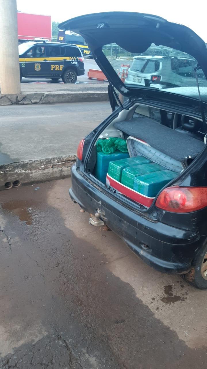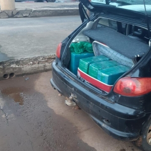 No sábado (10), em Guaíra, na BR-163, 60 quilos de maconha e cinco de skunk foram apreendidos em um Peugeot 206. Motorista não foi encontrado.