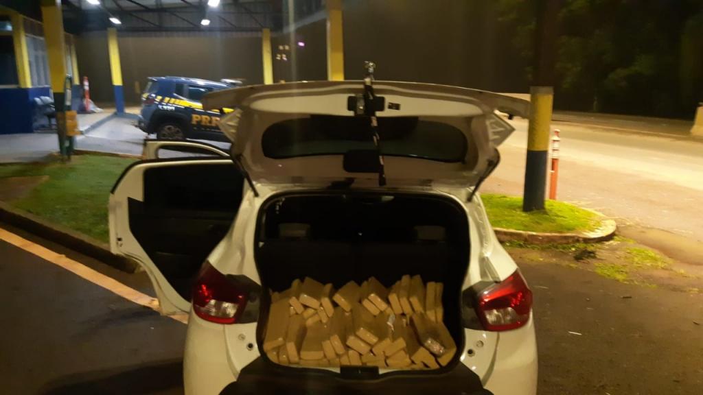 Ainda na sexta, por volta das 23h20, na BR-277 em Céu Azul, num Renault Kwid, policiais rodoviários federais apreenderam 100 quilos de maconha e prenderam dois homens.