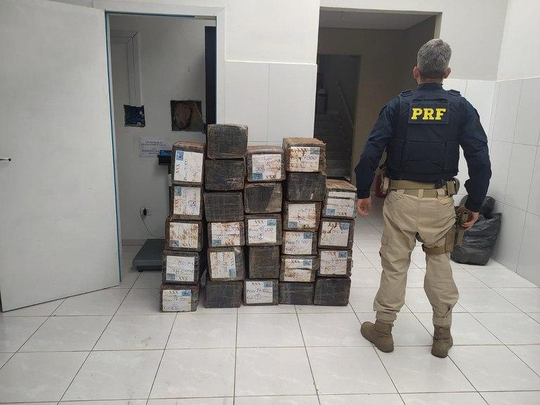 A Polícia Rodoviária Federal (PRF) apreendeu cerca de 438 quilos de maconha na manhã desta segunda (10) em Curitiba (PR). A droga era transportada num Fiat/Touro com queixa de roubo por um homem que tentou fugir da abordagem policial.