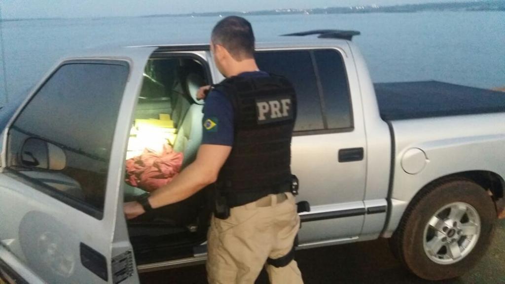 A PRF foi avisada de que uma caminhonete GM/S10 estava parada sobre a ponte. Em seguida, os policiais foram até o local e encontraram o veículo abandonado, carregado com vários tabletes de maconha.