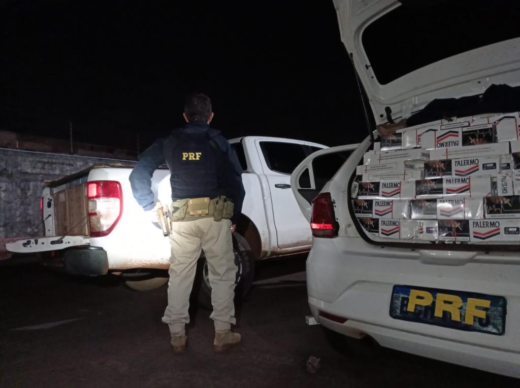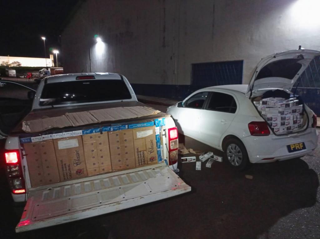 Na primeira ocorrências 2 indivíduos foram presos transportando 33,5 mil maços de cigarros em uma Ford Ranger e um Gol.