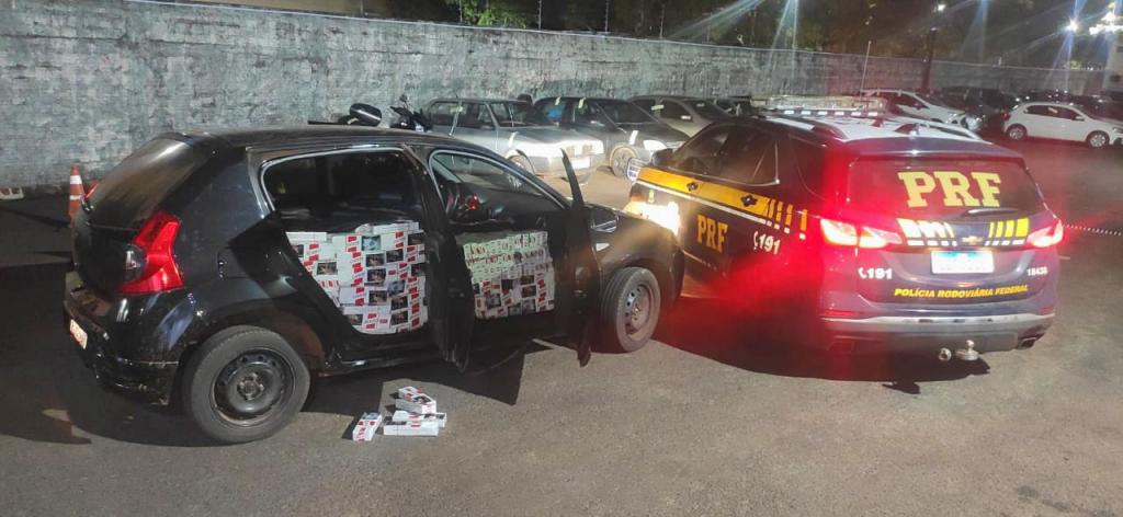 Na segunda ocorrência, um Sandero foi apreendido também completamente carregado com cigarros, totalizando 12,5 mil maços.