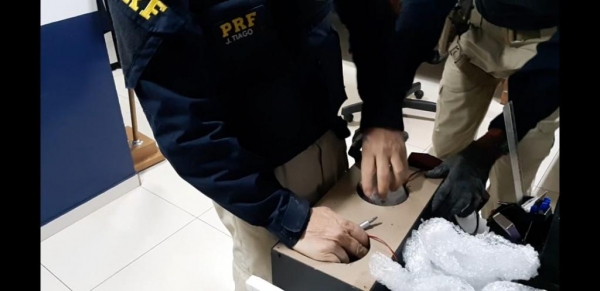 Diante dos fatos, a equipe decidiu abrir também as caixas de som e no interior das caixas também foram encontradas grande quantidade de medicamentos anabolizantes.