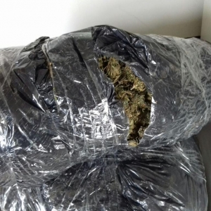 Após buscas na região, os policiais encontraram o carro, o qual estava abandonado no milharal. Ao abrir o capô do automóvel, a equipe PRF encontrou 7 quilos e 975 gramas de skank (ou skunk), também conhecida como supermaconha.