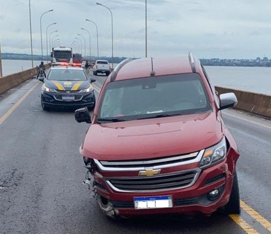 Após alguns minutos de acompanhamento, o motorista quase colidiu frontalmente com um caminhão, bateu na mureta da ponte e o veículo ficou imobilizado sobre a via. Ao abordarem o motorista, ele disse aos policiais que havia roubado a caminhonete junto com mais dois comparsas em um assalto a um casal, ocorrido na zona rural de Guaíra. Disse ainda, que levaria a caminhonete para o Paraguai, em Salto del Guaira.