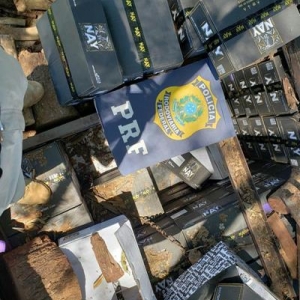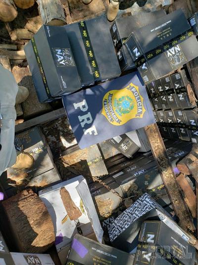 A Polícia Rodoviária Federal (PRF) apreendeu 400 caixas de essência (tabaco aromatizado) para narguilé na tarde desta terça-feira (22) em Santa Terezinha de Itaipu contrabandeadas do Paraguai e avaliadas em pelo menos R$ 600 mil em território brasileiro, as caixas estavam escondidas sob uma carga de lenha, em um compartimento oculto, na carroceria de um caminhão.
