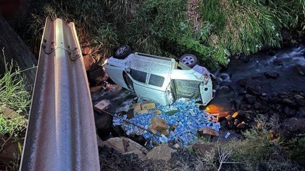 Durante aproximadamente 10 km, o veículo seguiu em alta velocidade, cometendo diversas infrações e colocando em risco a segurança viária e de terceiros. Em determinado momento, a caminhonete entrou em uma estrada vicinal e, ao cruzar uma pequena ponte, saiu da pista, rompeu o parapeito e caiu no rio abaixo da estrutura.