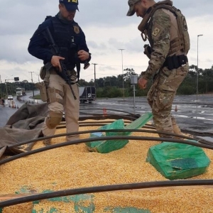 Durante a entrevista, o motorista entrou em contradição e disse aos agentes federais que estava transportando vários fardos de maconha ocultos em meio à carga de milho, bem como que pretendia entregá-los na cidade de Maringá (PR).