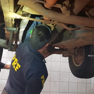 Após desconfiar do motorista, um homem de 32 anos de idade morador de Ponta Grossa (PR), os policiais rodoviários federais decidiram fazer uma verificação minuciosa do veículo.