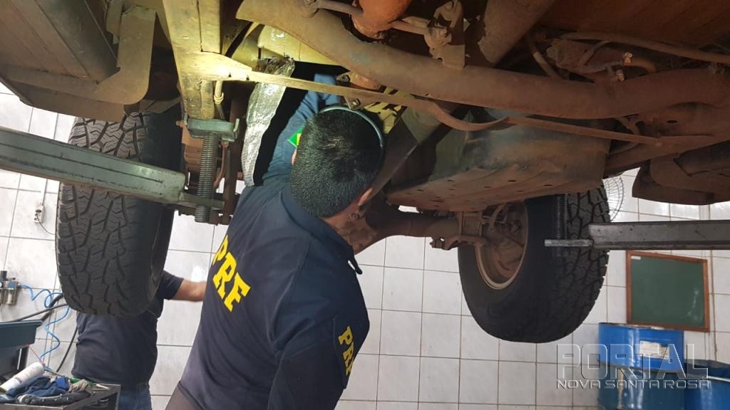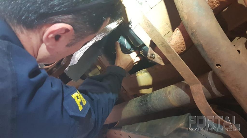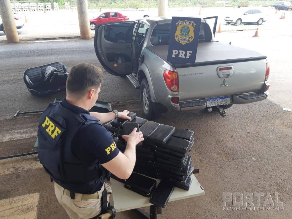 A droga era transportada em um compartimento oculto, sob o assoalho de uma caminhonete Mitsubishi L200. O motorista foi preso em flagrante.