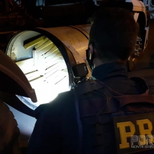 Por volta de 19 horas, os agentes da PRF abordaram o veículo, que transportava uma carga de milho, nas proximidades da rotatória da BR-272.