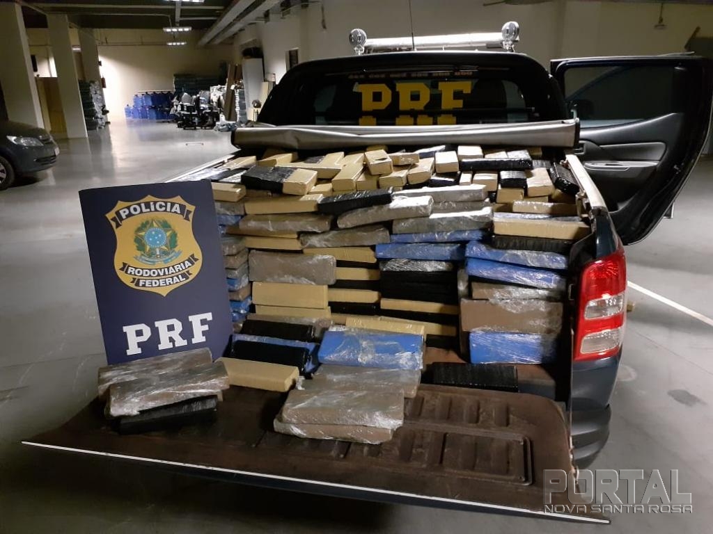 A Polícia Rodoviária Federal (PRF) apreendeu 1.010 quilos de maconha na noite desta terça-feira (5) em Guaíra, na região oeste do Paraná.