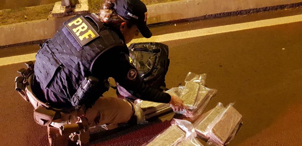 A mulher de 28 anos, nacionalidade paraguaia, portava uma mochila que foi vistoriada, tendo em seu interior 08 tabletes de maconha, que totalizaram 6,9kg.