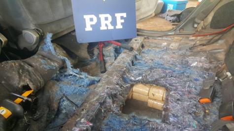 Segundo informações, os policiais desconfiaram do carro e realizaram a abordagem. Como o motorista apresentou nervosismo, uma vistoria 'mais minuciosa' foi iniciada. Rapidamente, os federais constataram que o Santana apresentava fundo falso, que escondia 84 quilos de maconha.