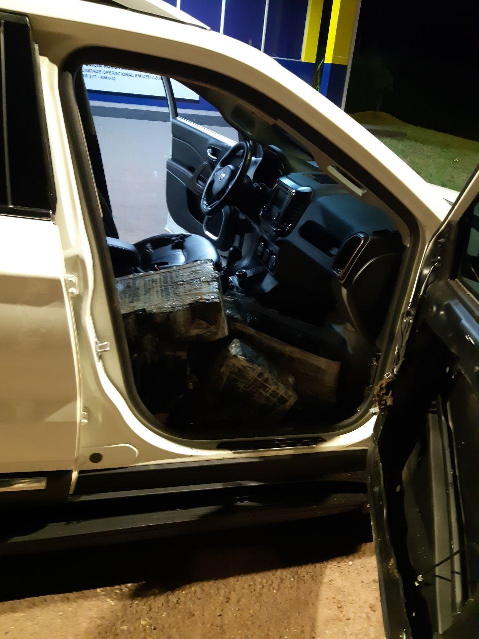 Em seguida o veículo foi encontrado abandonado, com grande quantidade de entorpecentes em seu interior, nas proximidades do KM 641 da BR 277.